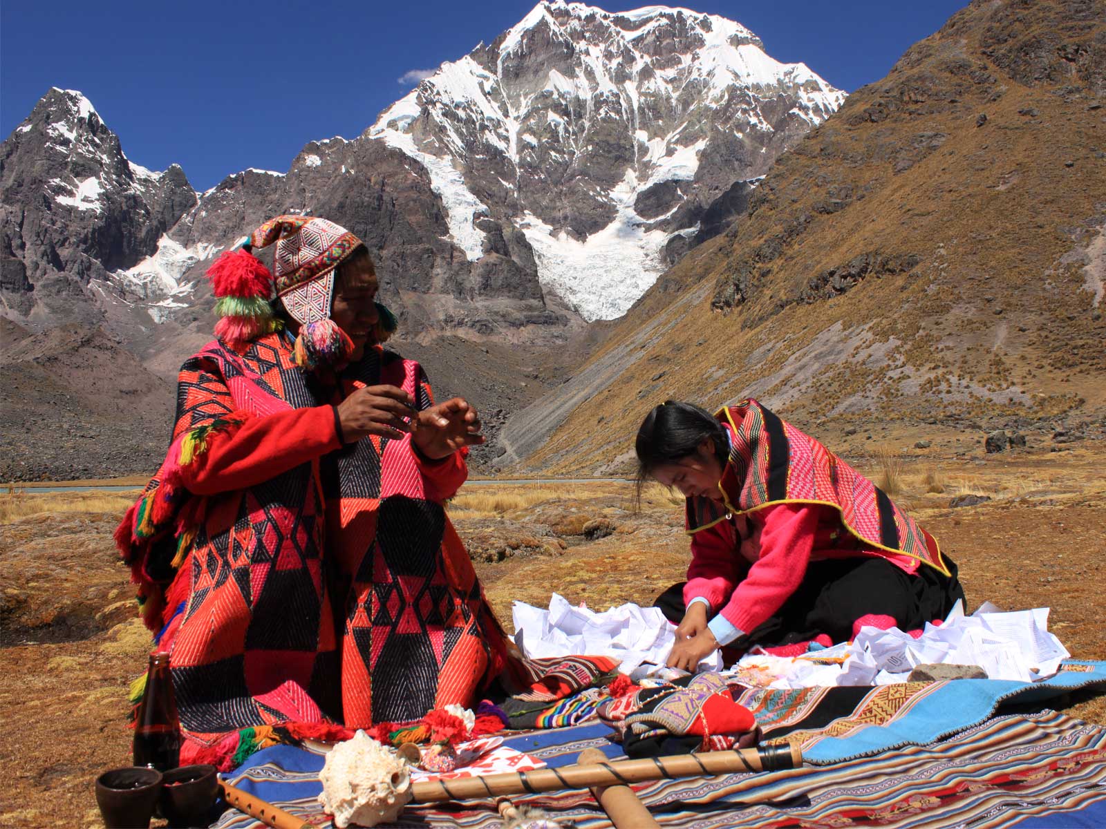 Andean rituals and their interrelation with Pachamama (Mother Earth) and the Apus (mountain deities) on pilgrimages to sacred mountains like Ausangate are a part of the daily practice of the Q’eros Community.
